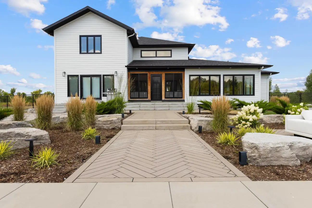Starting from a blank canvas on a new-build property, this project was designed to deliver a minimalist landscape that still felt substantial enough to match the scale of the home and surrounding grounds. The vision centered on clean lines, restrained material selection, and a composition that would feel both modern and inviting.